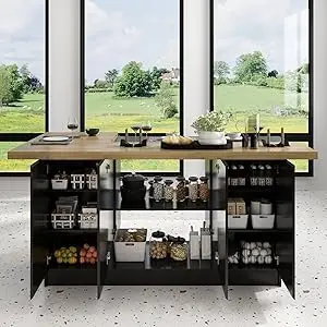 This multi-functional kitchen island effortlessly combines style and practicality, making it an essential centerpiece for your kitchen or dining area. Its modern L-shaped design offers an inviting space for family meals or entertaining guests while providing ample storage to keep your space organized. Whether you use it as a buffet, dining table, or prep station, this cabinet is designed to meet your every need.